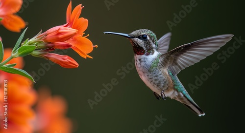 © Awan, Fototapeta premium Hummingbird and Flowers: A Moment of Grace
