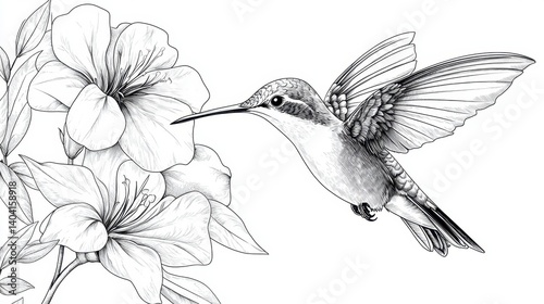 © Sakdecha, Fototapeta premium Hummingbird and Flowers Sketch Art