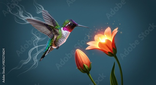 © arlisa, Fototapeta premium Hummingbird and tulip flower illustration