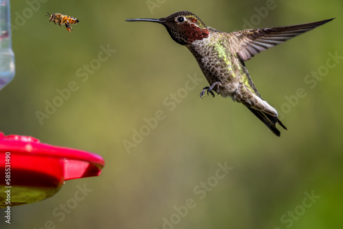 © John, Naklejka premium Hummingbird at the feeder with the bees