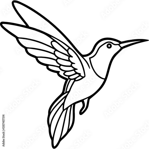 © Arnob, Obraz premium Hummingbird bird simple black line art image, Black bold outline vector icon, Bird vector illustration
