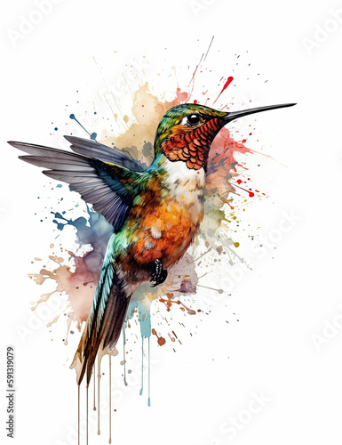 © Art for Insomniacs, Obraz premium Hummingbird, birds, logo design, watercolor, beautiful. Generative AI