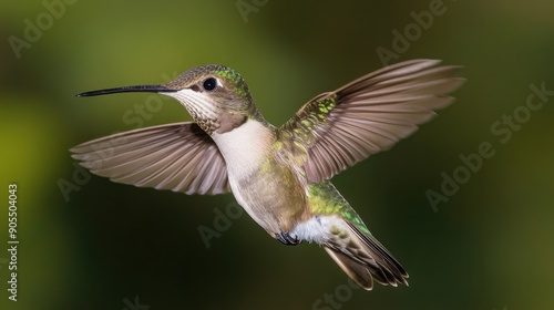 © MakoPoko, Fototapeta premium Hummingbird captured in mid-flight, displaying intricate feather patterns and graceful movement.