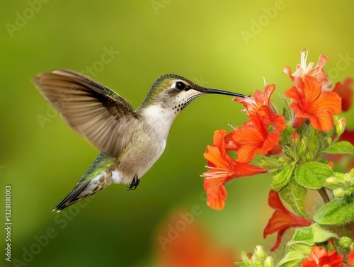 © Rapit, Fototapeta premium Hummingbird Feeding for Garden Bloom, Nature.
