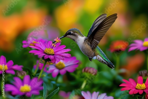 © Haider, Fototapeta premium Hummingbird feeding from a vibrant flower in the garden