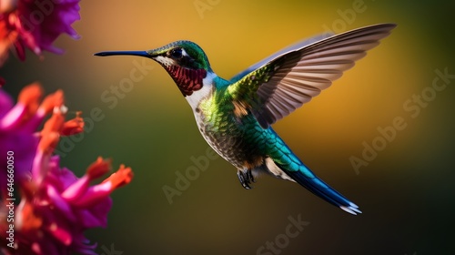 © Nice Seven, Obraz premium hummingbird feeding on a flower