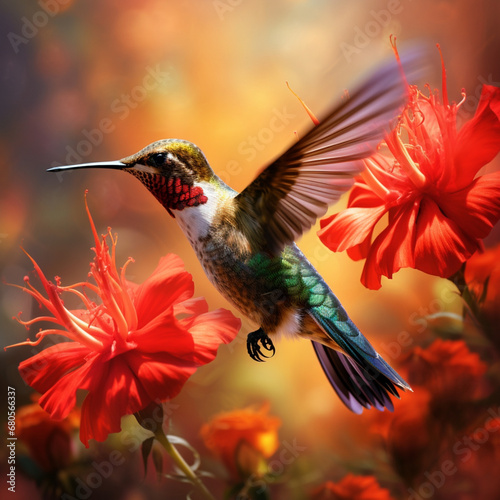 © Betty, Obraz premium Hummingbird Feeding on a Flower