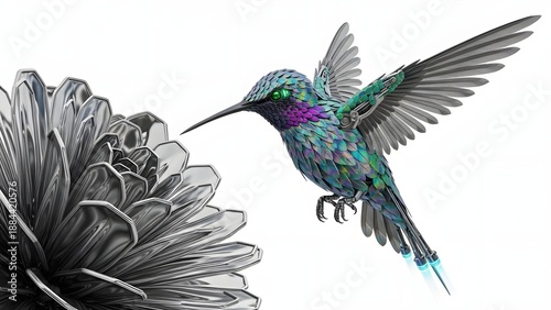 Obraz premium Hummingbird feeding on a flower isolated on white background