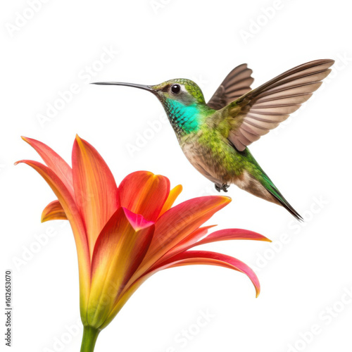 © kashem, Obraz premium Hummingbird feeding on a lily flower isolated on transparent background