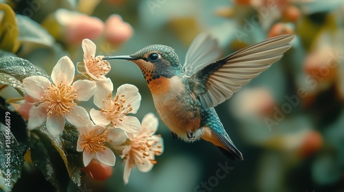 © Yeasmin_Creation, Fototapeta premium Hummingbird Feeding on Blossom. Generative AI