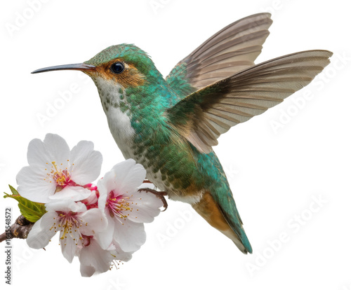 © MonoCrafted, Fototapeta premium Hummingbird feeding on cherry blossom nature, isolated on transparent background, png