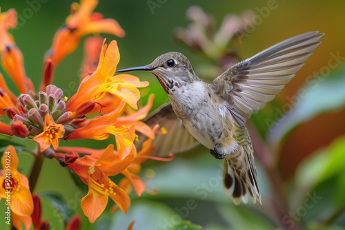 © ukasz, Fototapeta premium hummingbird feeding on flower Generative AI