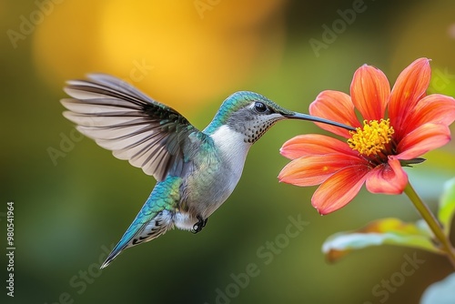 © jinna, Fototapeta premium Hummingbird Feeding on Flower in Garden