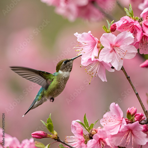 Fototapeta premium hummingbird feeding on pink blossoms ask
