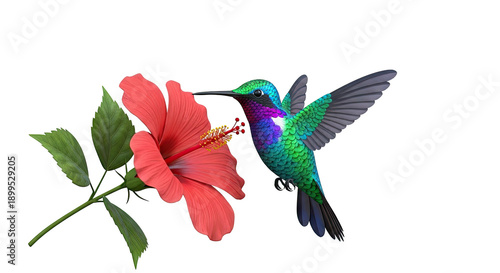 © Eri, Naklejka premium Hummingbird Feeding on Red Hibiscus Flower