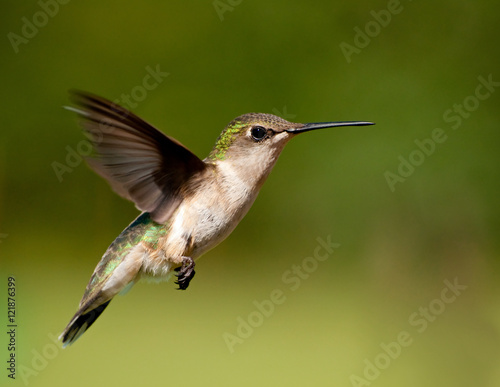 Obraz premium Hummingbird female hovering against green background