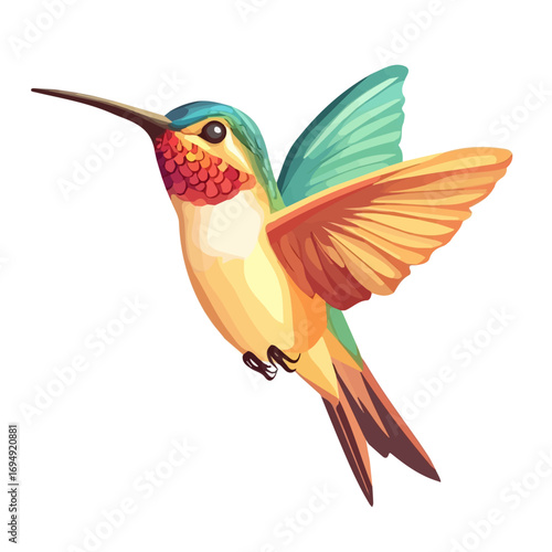 © John, Obraz premium Hummingbird, flat 2D isometric cartoon vector image isolated on white background.