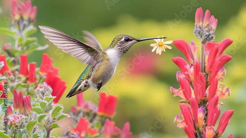 Fototapeta premium Hummingbird flower animal nature. --no dark, black pic