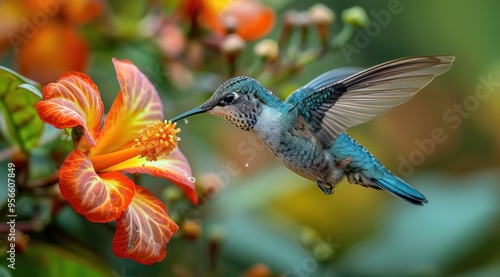Fototapeta premium Hummingbird Flower Nectar.