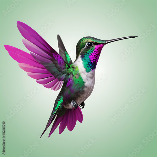 © zanib, Obraz premium Hummingbird flying and background green white.