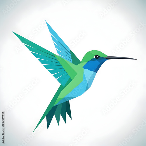 © elyf, Obraz premium Hummingbird Flying Illustration in Geometric Style