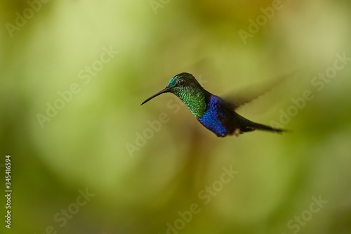 © Gudellaphoto, Fototapeta premium Hummingbird flying mid air, blurred wings