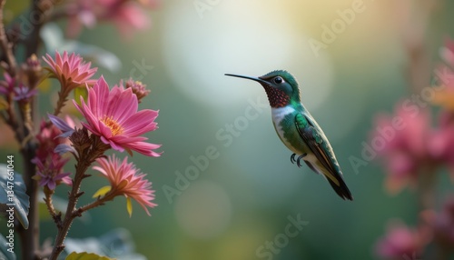 © Geser, Fototapeta premium hummingbird flying near flower