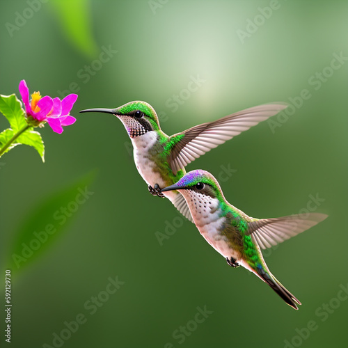 © nicholashan, Fototapeta premium hummingbird flying next to beautiful flower - AI Generated