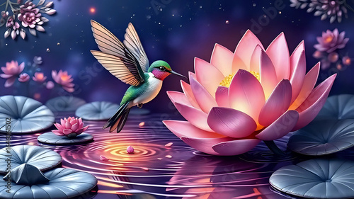Obraz premium Hummingbird flying over a lotus