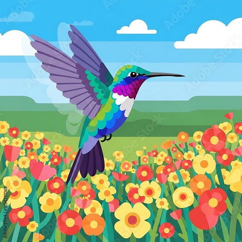 Obraz premium Hummingbird Flying over Flowers.