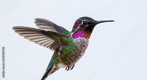 © AI Stock, Naklejka premium Hummingbird Flying with Colorful Plumage in Bright Light Nature Photo