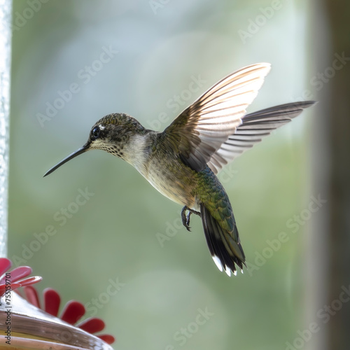 © Ryan, Naklejka premium Hummingbird Freeze Framed Approaching Feeder