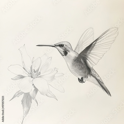 Naklejka premium Hummingbird gracefully hovering near flower with delicate wings in a serene...