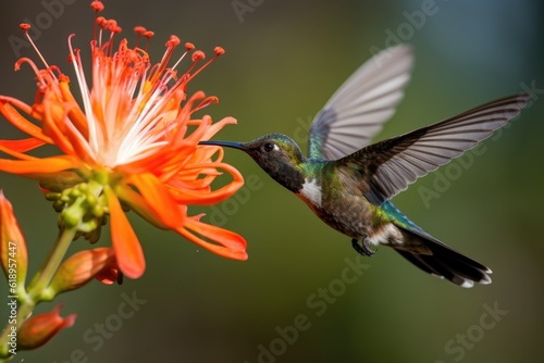 Fototapeta premium hummingbird hovering above flower, learning the basics of flight, created...