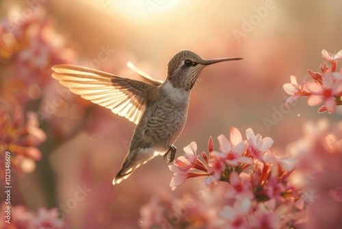© Rashidi, Fototapeta premium Hummingbird Hovering in Vibrant Tropical Garden