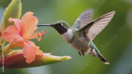 © Gao, Fototapeta premium Hummingbird Hovering Near a Vibrant Orange Flower