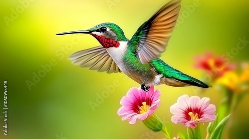 Fototapeta premium Hummingbird Hovering Near Flower Mid-Air