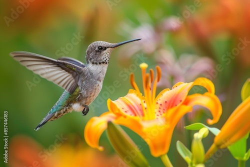 © Sandu, Fototapeta premium Hummingbird Hovering Near Lily