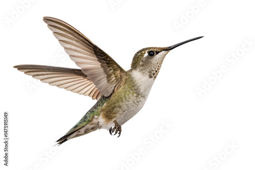 Fototapeta premium Hummingbird hovering with spread wings isolated against a plain backdrop on...