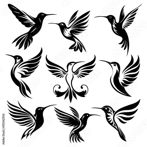 © Оля Храпан, Fototapeta premium hummingbird icon set on white background