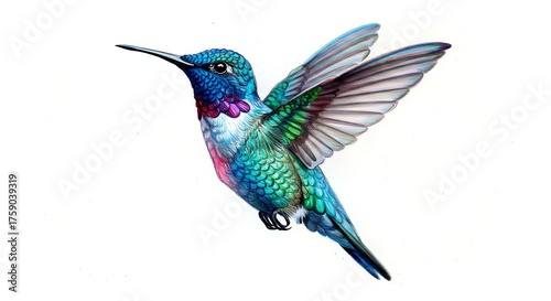 © Sabtu, Obraz premium Hummingbird illustration in flight with vibrant plumage isolated on white