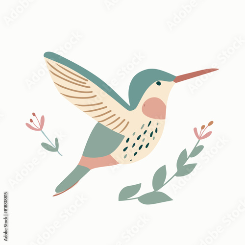 Fototapeta premium Hummingbird in cartoon, doodle style. Image for t-shirt, web, mobile apps and...