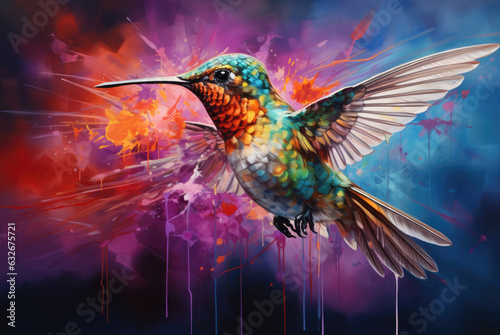 © ABCreative, Obraz premium Hummingbird in Colorful Garden - AI Artistry.