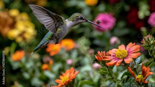 Fototapeta premium Hummingbird in Flight: A Colorful Moment in Nature