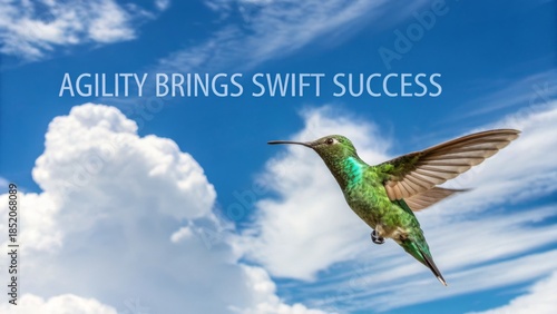 © MZulfadhli, Naklejka premium Hummingbird in Flight Against a Bright Blue Sky