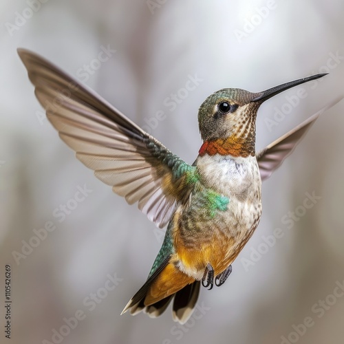 Fototapeta premium Hummingbird in flight against an isolated background with slight motion blur...