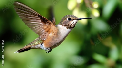 Obraz premium Hummingbird in Flight Among Lush Greenery
