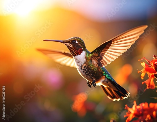 © Tahu, Fototapeta premium Hummingbird in flight at sunset