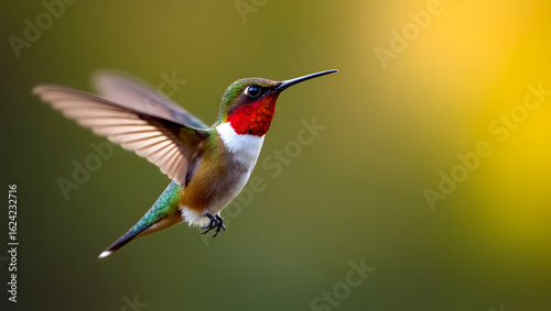 © AllyRauf, Naklejka premium Hummingbird in Flight, Capturing the Beauty of Nature in Motion, Close-Up of a Hummingbird Vibrant Colors and Delicate Wings in Midair