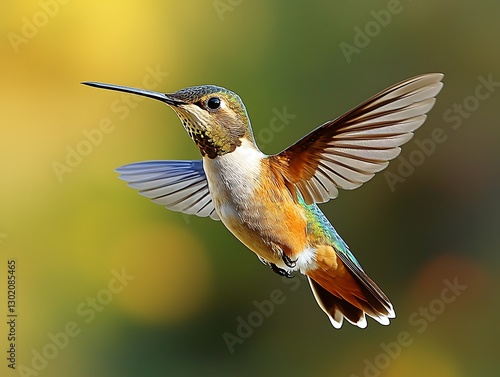 © Tahu, Fototapeta premium Hummingbird in Flight, Garden Bloom